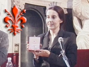 Hejer Charf receiving the Seal Peace of the City of Florence for her movie LES PASSEURS